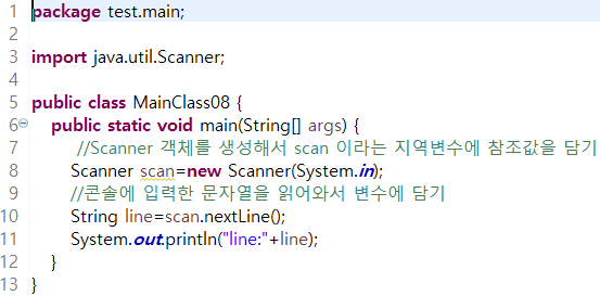 MainClass08 (입력한 텍스트를 콘솔창에 출력하기)