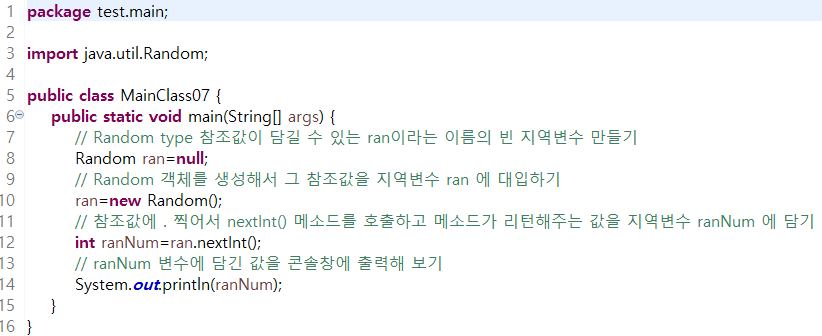 MainClass07 (랜덤한 숫자 콘솔창에 출력하기)
