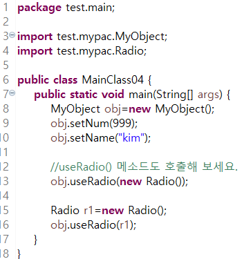 MainClass04.java, MyObject.java, Radio.java (다수의 클래스를 활용해서 인자 전달하기)