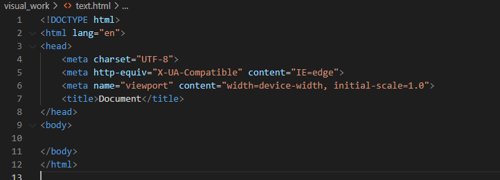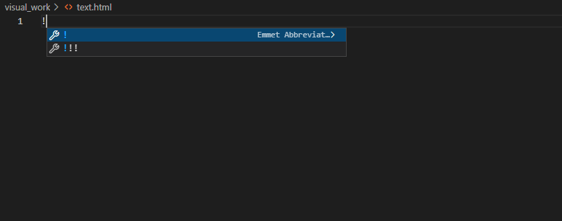 처음 visual studio를 열고 ! tap 혹은 ! enter를 타이핑해본다.