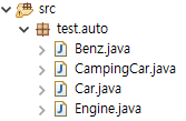 자동으로 생성된 코드를 보면 Benz를 호출할때 부모클래스인 Car가 같이 호출되고 이때 Car 생성자에 Engine type 객체가 필요하기 때문데 저렇게 코드가 작성됬다는 것을 유추할 수 있다.