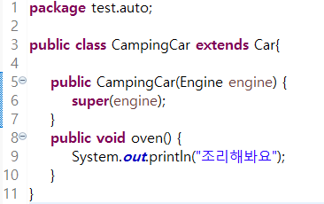 같은 방식으로 CampingCar라는 예시도 작성했다.
