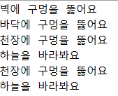 위의 코드인 "벽에 구멍을 뚫어요"와 "바닥에 구멍을 뚫어요"은 같은 결과를 출력한다.