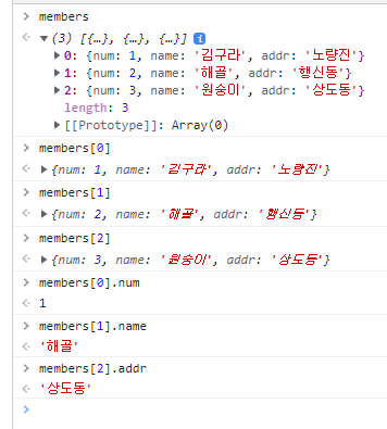 members[1]. -> object type (점)