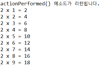 System.out.println("actionPerformed() 메소드가 리턴됩니다.");