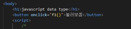 button onclick과 f1()함수를 연결시켜서 버튼을 누를때마다 "하나 두울 세엣" 정보가 찍히게 만들어봤다.