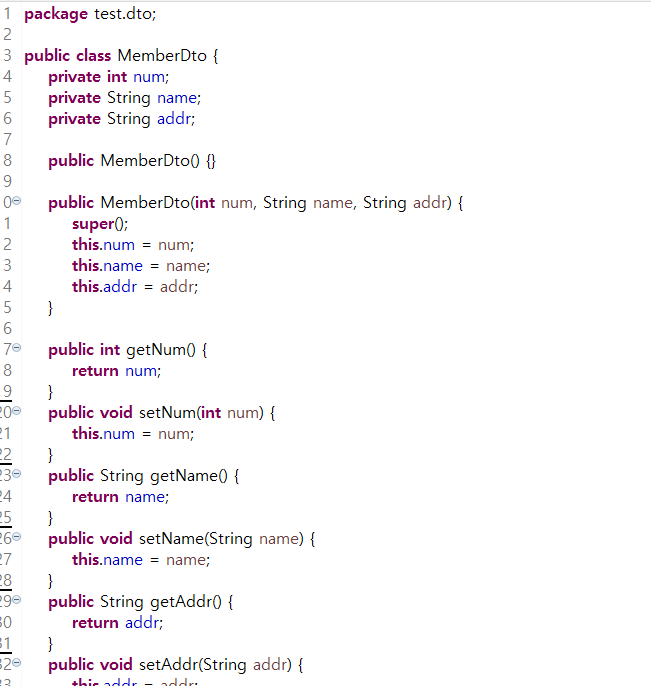 MemberDto dto=new MemberDto(num, name, addr);