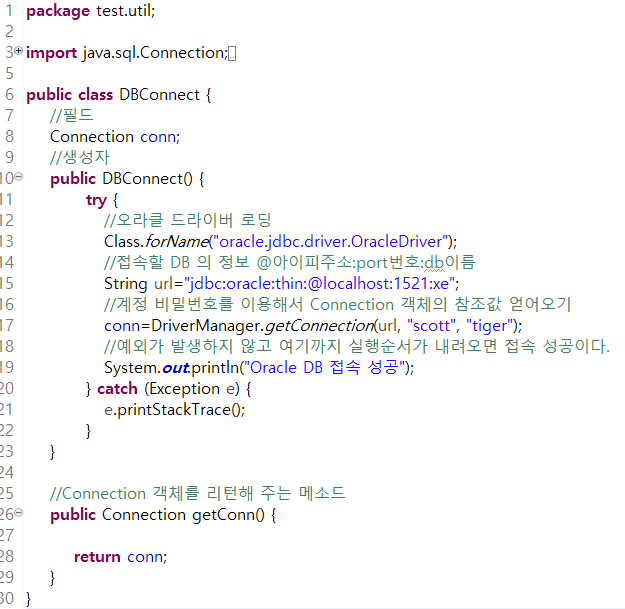 //DBConnect 객체를 이용해서 Connection 객체의 참조값을 얻어온다.