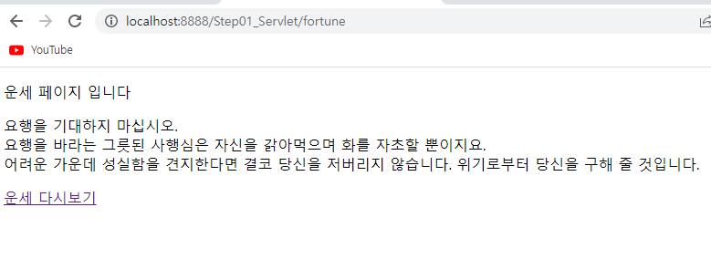 pw.println("<a href=\"/Step01_Servlet/\">운세 다시보기</a>");