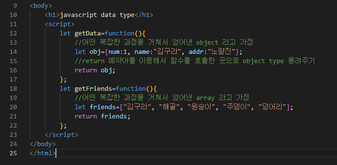각각의 함수 안에 let을 활용하여 object 혹은 array 함수로 일련의 정보를 입력해놓고 return으로 이동시켜 값을 출력할 수 있도록 작성했다.
