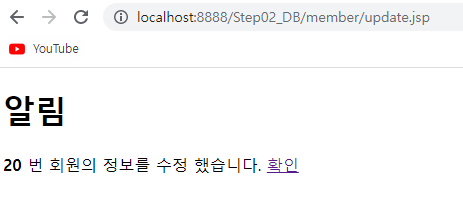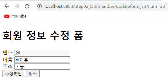 정보를 입력할 수 있는 form을 구성하였다. form action을 설정해서 버튼 클릭시 update.jsp로 이동한다.