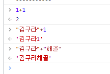 1+1 은 산술연산이며 "김구라"+1, "김구라"+"해골" 연결연산이다.