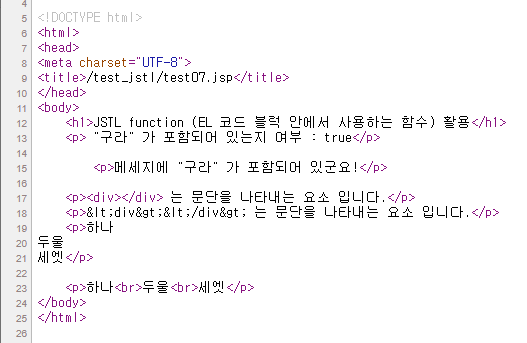 <h1>JSTL function (EL 코드 블럭 안에서 사용하는 함수) 활용</h1>