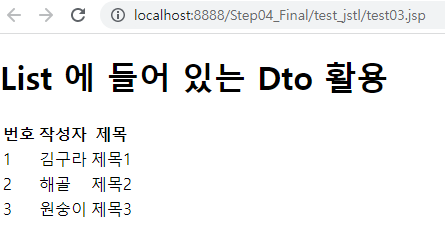 두 코드가 같은 결과를 출력한다. 즉 jstl 문법으로 작성한 forEach 문이 java의 for문과 같게 동작한다.