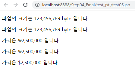 fmt:formatNumber을 활용하여 숫자를 원하는 형식으로 표현할 수 있다.
