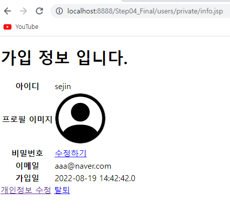 | Step04_Final (users, private) 비밀번호 수정, 회원 탈퇴 (0) | 2022.08.24 |
