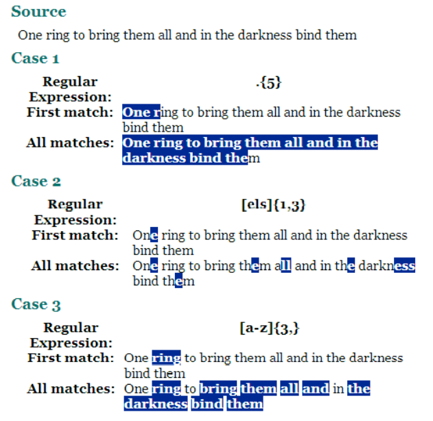 { } 는 정확한 문자의 반복횟수를 정의한다.