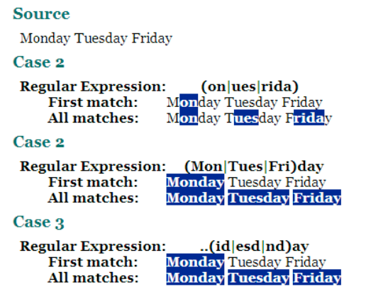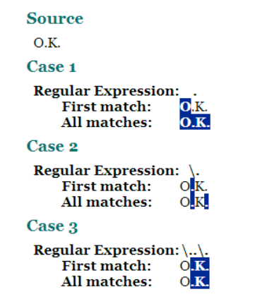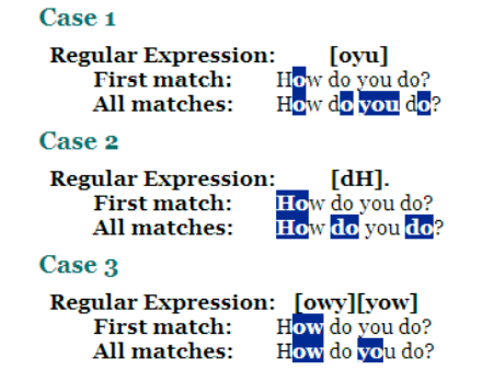 Case2에서 [ ] 대괄호와 .을 같이 썼기 때문에 앞의 글자는 d or H, 두번째 글자는 아무거나 한글자를 갖는 두글자를 추출한다.