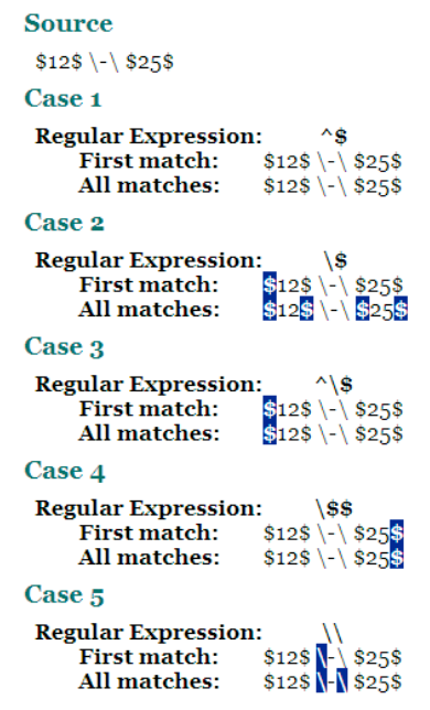 특별한 의미를 가지고 있는 문자열 ^, $