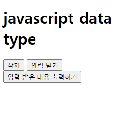입력받기 버튼을 눌러 팝업창에 일정 텍스트를 입력하고 확인을 누른뒤 입력 받은 내용을 출력하기 버튼을 누르면 입력한 텍스트가 출력된다.
