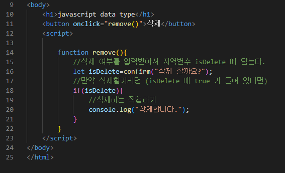 confirm 빌트인 함수를 활용하여 삭제버튼을 만들었다.