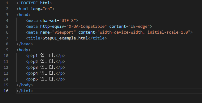 html, head, meta, title, body, p 등의 태그는 object type 형식을 띄고 있다.