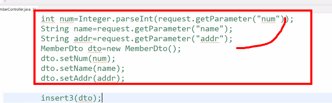 //컨트롤러 메소드의 매개변수에 dto 를 선언해도 된다.
