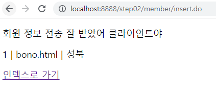 <p>회원 정보 전송 잘 받았어 클라이언트야</p>