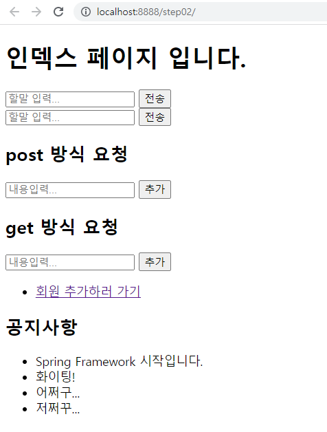 noticeList.add("Spring Framework 시작입니다.");