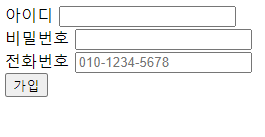 <input type="text" name="phone" id="phone" placeholder="010-1234-5678"><br/>