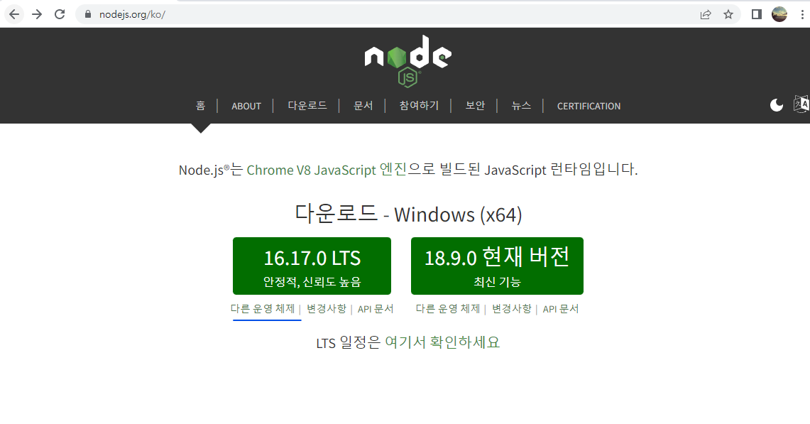 node js 설치하기