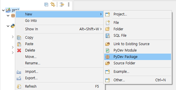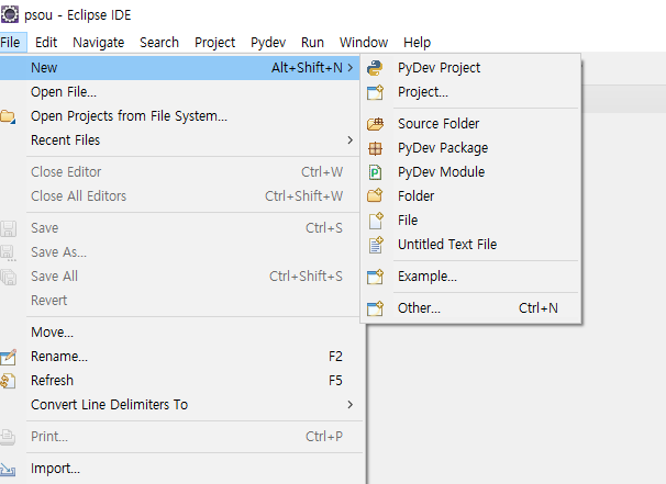 코드를 작성 후 run as python 혹은 ctrl f11 로 실행할 수 있다