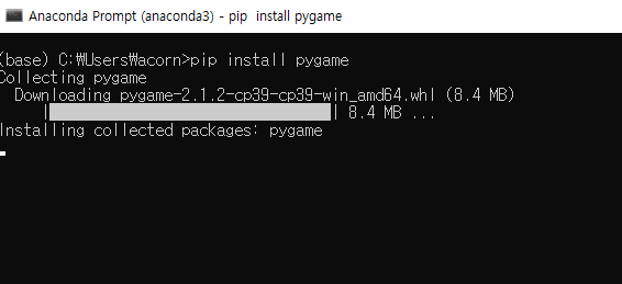 # 아나콘다 프롬포트에서 pip install pygame