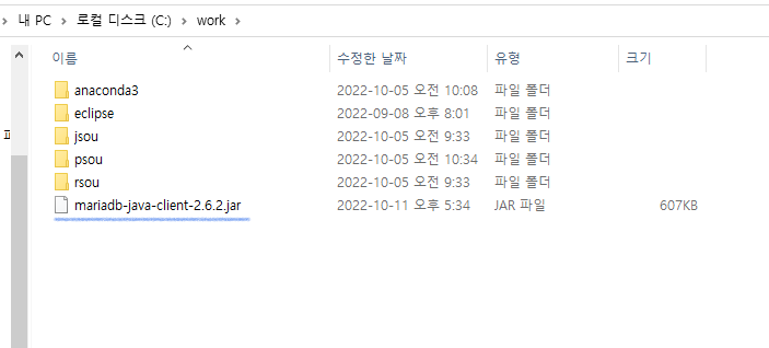 자주 쓸 jar 파일은 미리 작업파일 근처로 옮겨 논다.