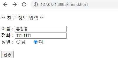 전화 : <input type="text" name="phone" value="111-1111"><br/>