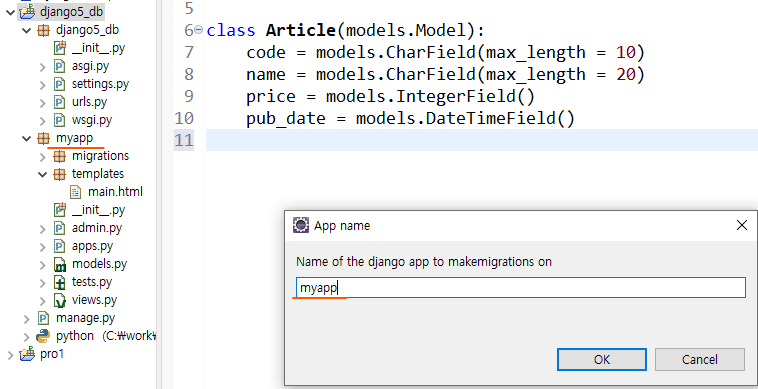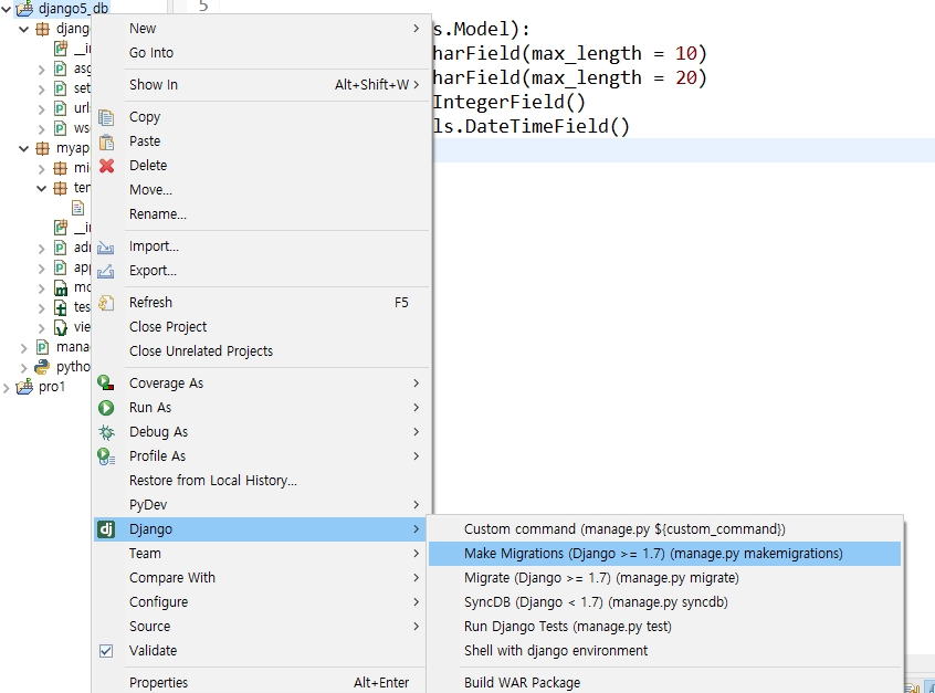 Migrations 후에 늘 하던데로 migrate도 해야한다. (사진 첨부는 하지 않았지만 방식은 비슷하다.)