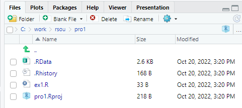 script 내용을 저장하면 R 확장자로 저장된다. (예시에서는 ex1 이라는 임의의 명칭으로 저장했다)