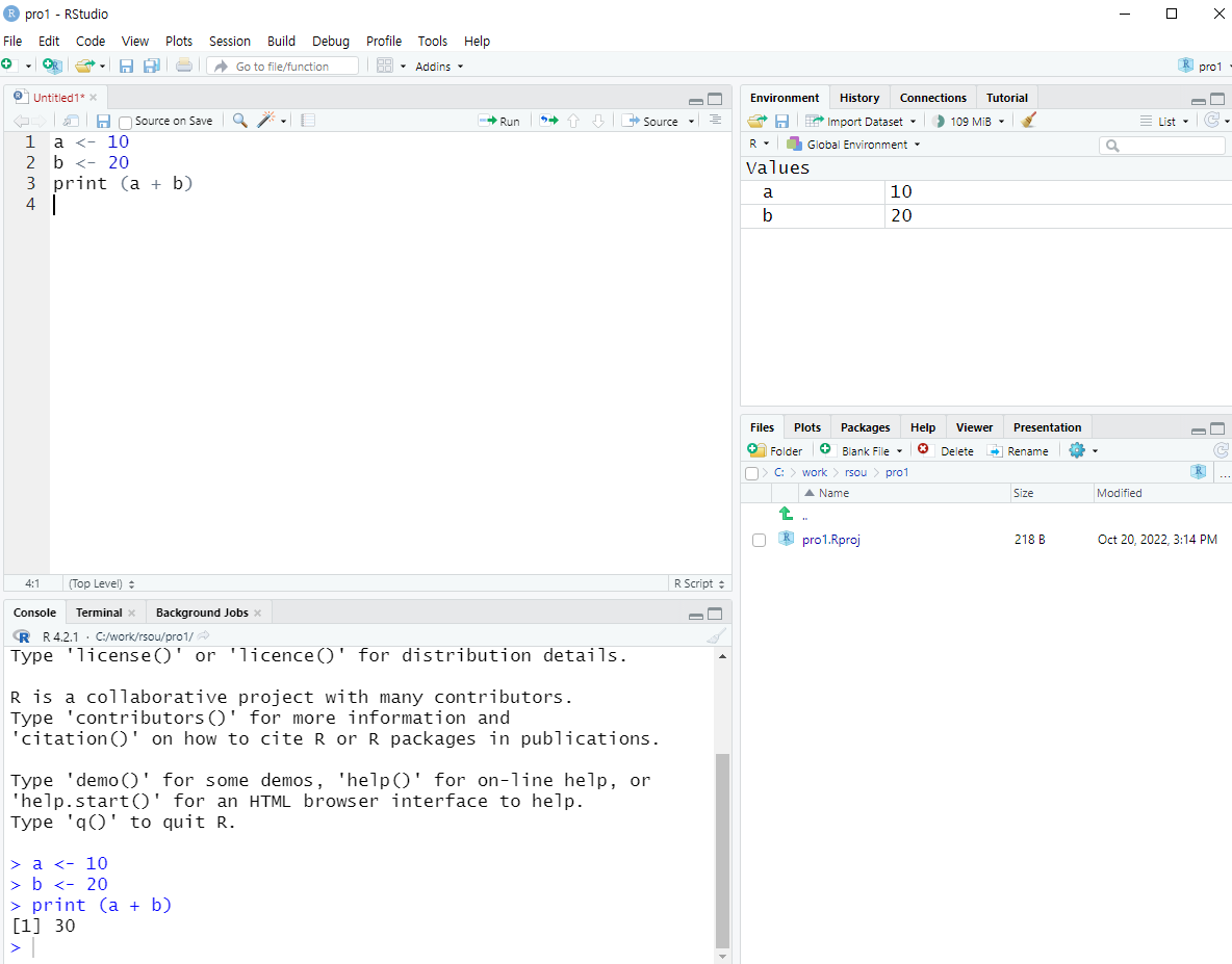 script에 한줄 단위로 작성하고 ctrl + enter 작성하면 한줄씩 실행된다