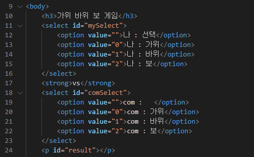 배운 것들을 활용하여 가위바위보 게임을 만들고 승패를 표시할 수 있는 기능을 넣어보자