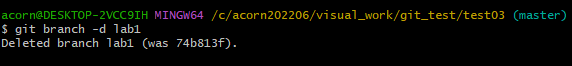 git branch -d 명령어를 활용해 lab1 branch만 삭제 할 수 있다.ㅎ