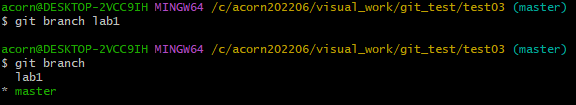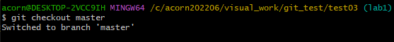 git merge 명령어를 사용하여 lab1 과 master branch를 병합할 수 있다.