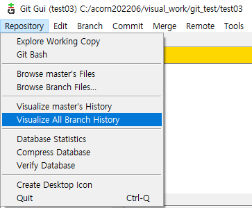 git GUI를 활용하여 branch와 checkout의 위치를 확인할 수 있다.