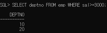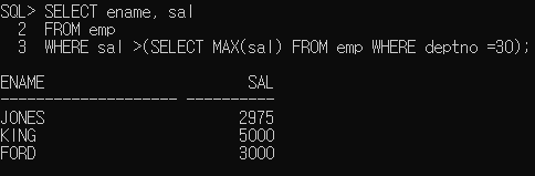 WHERE sal > ANY(SELECT sal FROM emp WHERE deptno=30);