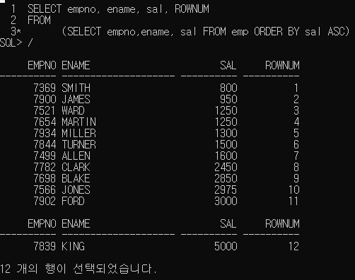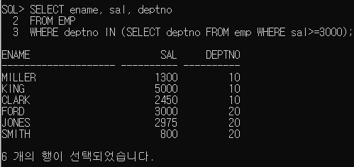 다중행 서브쿼리
