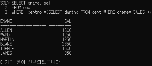 단일 행 서브쿼리