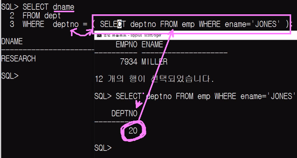 단일행 서브쿼리