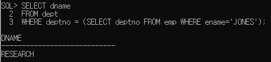 존스가 근무하는 부서의 이름을 출력해보자.