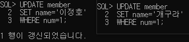 이후 COMMIT을 하면 데이터가 저장되기에 다른 프롬포트 창에서도 확인 가능하다.