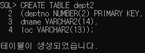 임의의 TABLE dept2와 emp2를 생성했다.