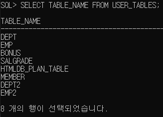 SELECT TABLE_NAME FROM USER_TABLES;